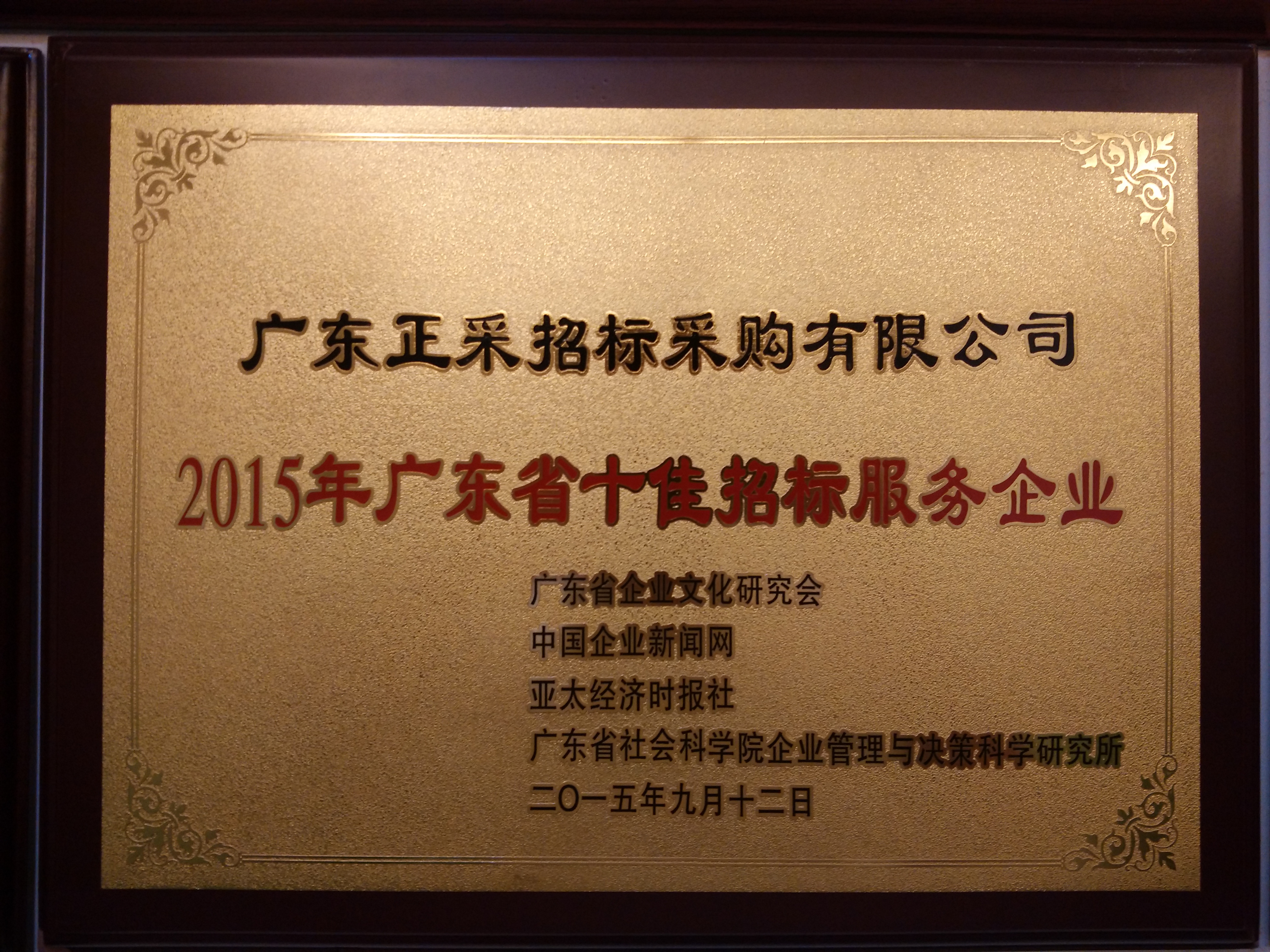 2015年廣東省十佳招標服務企業